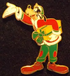 Goofy with Present Under Arm is an Open Edition pin in the Full Set 4-pin set from the 2013 Paris Christmas Booster pin series. It was originally released on , 2013 and was available from Disneyland Resort Paris .