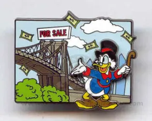 Scrooge McDuck by the Brooklyn Bridge is an Open Edition pin from the World Of Disney (NYC) pin series. It was originally released on , 2004 and was available from Disney Store US .