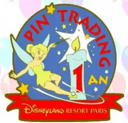 1st Anniversary Pin Trading Disneyland Resort Paris is a Limited Edition (LE) 2000 pin from the Pin Trading pin series. It was originally released on , 2002 and was available from Disneyland Resort Paris .