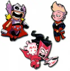 Pin features Thor , Captain Marvel and Scarlet Witch