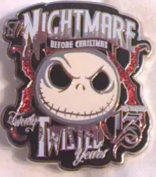 Jack Skellington - Twenty Twisted Years 2013 is a Limited Release pin from the Nightmare Before Christmas 20th Anniversary pin series. It was originally released in October, 2013 and was available from Disney Fan Club .