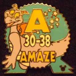 A for Amaze (30-38) is a Limited Release pin from the Cast Lanyard Collection III - Figment Epcot Parking Signs pin series. It was originally released in October, 2004 and was available from Walt Disney World .
