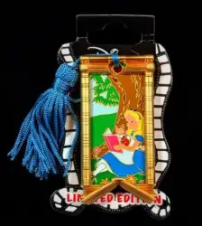 Alice is a Limited Edition (LE) 300 pin from the Bookmark Series pin series. It was originally released on , 2017 and was available from Disney Studio Store Hollywood / Soda Fountain .