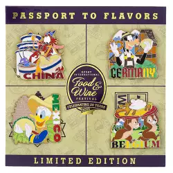 Passport to Flavor Booster Set is a Limited Edition (LE) 2000 4-pin set from the Epcot International Food & Wine Festival 2015 pin series. It was originally released on , 2015 and was available from Walt Disney World .