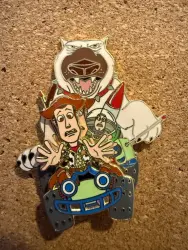 Buzz & Woody Riding Remote Control Car is a Limited Edition (LE) 1500 pin from the Toy Story pin series. It was originally released on , 2001 and was available from Disneyland Resort .