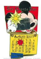 August (Say Cheese Day) is a Limited Edition (LE) 1000 pin from the Holidaze Calendar Dangle Series pin series. It was originally released in August, 2007 and was available from Disneyland Resort .