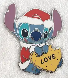 Santa Stitch Eating a Cookie with Love Written on it is an Open Edition pin from the Joyeux Noël 2018 pin series. It was originally released on , 2018 and was available from Disneyland Resort Paris .