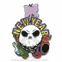 New Year's Jack is an Open Edition pin from the Nightmare Before Christmas Jack Skellington Holiday Mystery Collection pin series. It was originally released on , 2007 and was available from Multiple Sources (WDW, DLR, etc.).