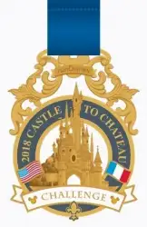 Castle to Château Medal is a Limited Edition (LE) 608 pin from the runDisney: Disneyland Paris Run Weekend Disney pin series. It was originally released on , 2018 and was available from Disneyland Resort Paris .