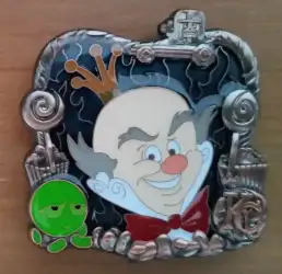 King Candy is a Limited Edition (LE) 400 pin from the Villainous Stained Glass Frames Series pin series. It was originally released on , 2014 and was available from Disney Studio Store Hollywood / Soda Fountain .
