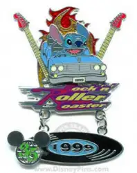 1999 - Stitch Rock 'n' Roller Coaster Starring Aerosmith Opens is a Limited Edition (LE) 2500 pin from the 35 Magical Milestones pin series. It was originally released on , 2006 and was available from Walt Disney World .