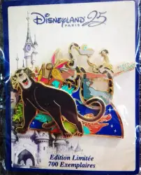 Jungle Book is a Limited Edition (LE) 700 pin from the Disneyland Paris 25th Anniversary: Characters on Parade pin series. It was originally released on , 2017 and was available from Disneyland Resort Paris .