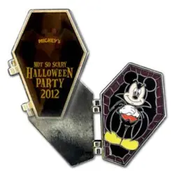 Mickey Coffin Logo is a Limited Release pin from the Mickey's Not So Scary Halloween Party (MNSSHP) 2012 pin series. It was originally released on , 2012 and was available from Walt Disney World .