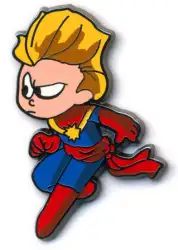 Captain Marvel Only is a Limited Release pin from the SDCC 2016 - Marvel Skottie Young pin series. It was originally released on , 2016 and was available from an Officially Licensed Disney trading pin vendor (see description for more information).