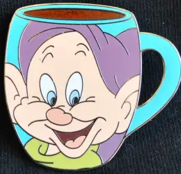 Dopey is a Limited Edition (LE) 2000 pin from the Spotlight - Mug Collection pin series. It was originally released on , 2008 and was available from Walt Disney World .