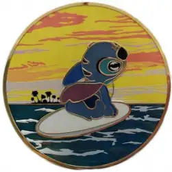 Surfing Stitch is a Limited Edition (LE) 300 pin from the HotArt ACME Pinopolis - Golden Magic STITCH Series pin series. It was originally released on , 2018 and was available from Artland / ACME .