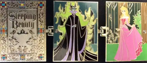 Pin features Aurora and Maleficent from Sleeping Beauty