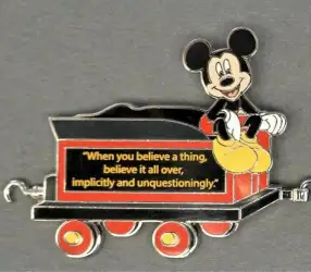Mickey on Train Car is a Limited Edition (LE) 3000 pin from the Disneyland Train with Quotes pin series. It was originally released on , 2019 and was available from Disneyland Resort .
