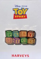 Play Nice is an Open Edition pin from the Harveys California - Toy Story Collection pin series. It was originally released on , 2019 and was available from an Officially Licensed Disney trading pin vendor (see description for more information).