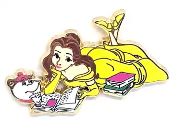 Pin features Belle , Mrs. Potts and Chip from Beauty and the Beast