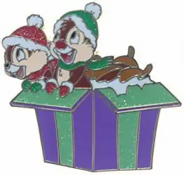 Chip and Dale in Purple Present is an Open Edition pin from the Christmas 2008 pin series. It was originally released on , 2008 and was available from Multiple Sources (WDW, DLR, etc.).