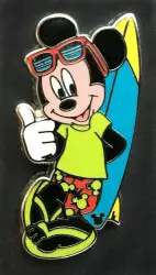 Surfer Mickey is an Open Edition pin from the Cast Lanyard Collection III - Mickey At The Different Parks pin series. It was originally released on , 2004 and was available from Walt Disney World .