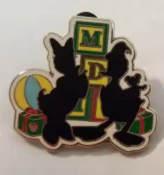 Donald and Daisy is an Open Edition pin from the 2008 Hidden Mickey - Christmas Silhouette pin series. It was originally released in November, 2008 and was available from Disneyland Resort .