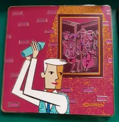 Bartender is a Limited Edition (LE) 300 pin from the Club 33 - Shag Secret Salon Boxed Set pin series. It was originally released on , 2018 and was available from Disneyland Resort .