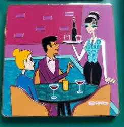Waitress is a Limited Edition (LE) 300 pin from the Club 33 - Shag Secret Salon Boxed Set pin series. It was originally released on , 2018 and was available from Disneyland Resort .