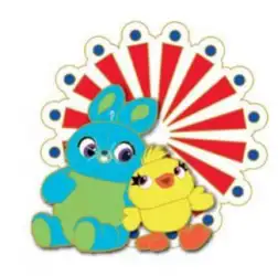 Ducky & Bunny (Surprise Release) is a Limited Edition (LE) 150 pin from the Toy Story 4 pin series. It was originally released on , 2019 and was available from Disney Studio Store Hollywood / Soda Fountain .