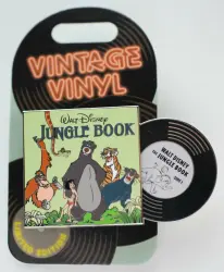 Jungle Book Record is a Limited Edition (LE) 3000 pin from the Vintage Vinyl Series pin series. It was originally released on , 2019 and was available from Multiple Sources (WDW, DLR, etc.).