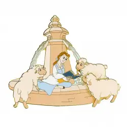 Belle with Sheep at Fountain is a Limited Edition (LE) 400 pin from the Beauty and the Beast pin series. It was originally released on , 2019 and was available from Multiple Sources (WDW, DLR, etc.).