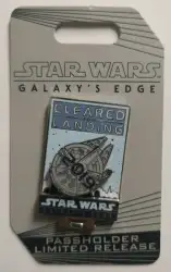 Cleared For Landing 2019 is a Limited Release pin from the Star Wars Galaxy's Edge - Annual Passholder Exclusive pin series. It was originally released on , 2019 and was available from Disneyland Resort .