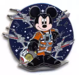 Mickey Mouse as an X-Wing Pilot is an Open Edition pin from the Disney Characters as Star Wars pin series. It was originally released on , 2007 and was available from Multiple Sources (WDW, DLR, etc.).