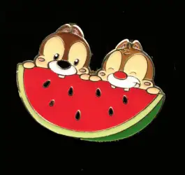Watermelon is an Open Edition pin from the SDR - Chip and Dale Summer Snacks Set pin series. It was originally released on , 2019 and was available from Shanghai Disney Resort .