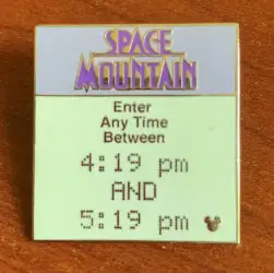 Space Mountain is an Open Edition pin from the Cast Lanyard Series IV - FastPass Tickets pin series. It was originally released in January, 2005 and was available from Walt Disney World .