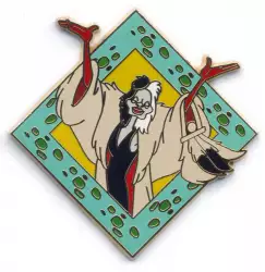 Cruella de Vil is an Open Edition pin from the Villains Diamond Deluxe Starter Set pin series. It was originally released on , 2004 and was available from Walt Disney World .
