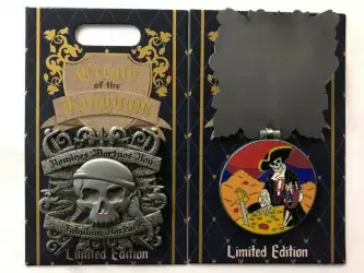Pirates of the Caribbean (Homines Mortuos Non Fabulam Narare) is a Limited Edition (LE) 2000 pin from the Crests of the Kingdom Series Disney pin series. It was originally released on , 2019 and was available from Disneyland Resort .