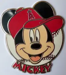 Mickey Mouse Los Angeles ANGELS of Anaheim Face on Baseball is an Open Edition pin from the Major League Baseball (MLB) pin series. It was available from an Officially Licensed Disney trading pin vendor (see description for more information).