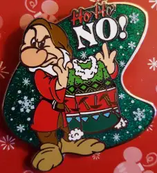Grumpy Ho Ho No is an Open Edition pin from the Christmas 2016 pin series. It was originally released on , 2016 and was available from Multiple Sources (WDW, DLR, etc.).