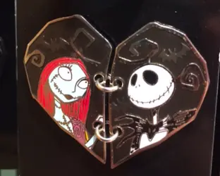 Pin features Jack Skellington and Sally from The Nightmare Before Christmas