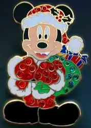 Jewled Santa Mickey is an Open Edition pin from the Christmas 2006 pin series. It was originally released on , 2006 and was available from Multiple Sources (WDW, DLR, etc.).