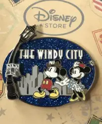 Mickey and Minnie in The Windy City, Chicago is an Open Edition pin from the Disney Store Chicago pin series. It was available from Disney Store US .