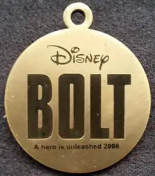 Bolt Dog Collar Tag is a Limited Edition (LE) 1750 pin from the Bolt pin series. It was originally released on , 2008 and was available from Multiple Sources (WDW, DLR, etc.).