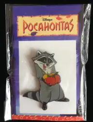 Pocahontas Set (Meeko Holding Fruit) is an Open Edition pin from the Pocahontas Propin pin series. It was available from an Officially Licensed Disney trading pin vendor (see description for more information).