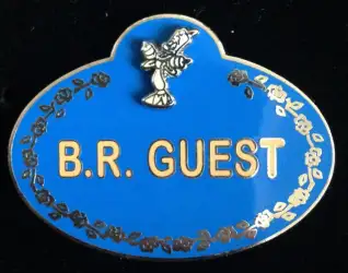 B.R. Guest is a Limited Release pin from the Cast Member Exclusive Nametag Pin pin series. It was originally released on , 2013 and was available from an Officially Licensed Disney trading pin vendor (see description for more information).