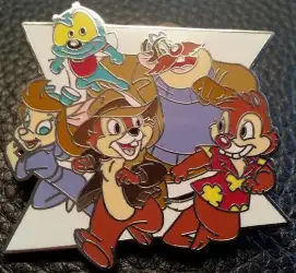 Chip 'N Dale Rescue Rangers Characters is a Limited Release pin in the Disney Afternoon Mystery Set 15-pin set from the Disney Afternoon Mystery pin series. It was originally released on , 2012 and was available from Multiple Sources (WDW, DLR, etc.).