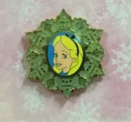 Alice (SUPER CHASER) is a Limited Edition (LE) 100 pin from the Season's Greetings Princess Snowflake Mystery Pin Set pin series. It was originally released on , 2015 and was available from Multiple Sources (WDW, DLR, etc.).