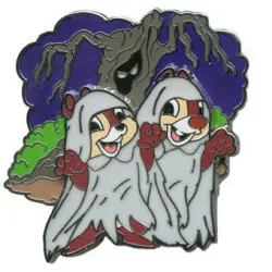 Chip and Dale as Ghosts is a Limited Edition (LE) 1500 pin from the Ghoulish Graveyard Collection pin series. It was originally released on , 2011 and was available from Multiple Sources (WDW, DLR, etc.).