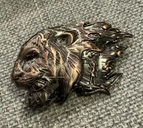 Shere Khan & Mowgli is a Limited Edition (LE) 150 pin from the Jungle Book (2016 Live Action) pin series. It was originally released on , 2016 and was available from Disney Studio Store Hollywood / Soda Fountain .